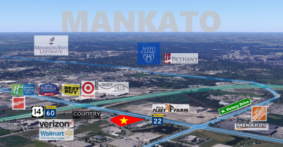 Prime land available in a rapidly developing region in the hilltop area of Mankato. The parcel is 4.41 acres, but could be subdivided. Development plans would need to be reviewed to divide the parcel into individual smaller lots. Excellent visibility from State Highway 22.
