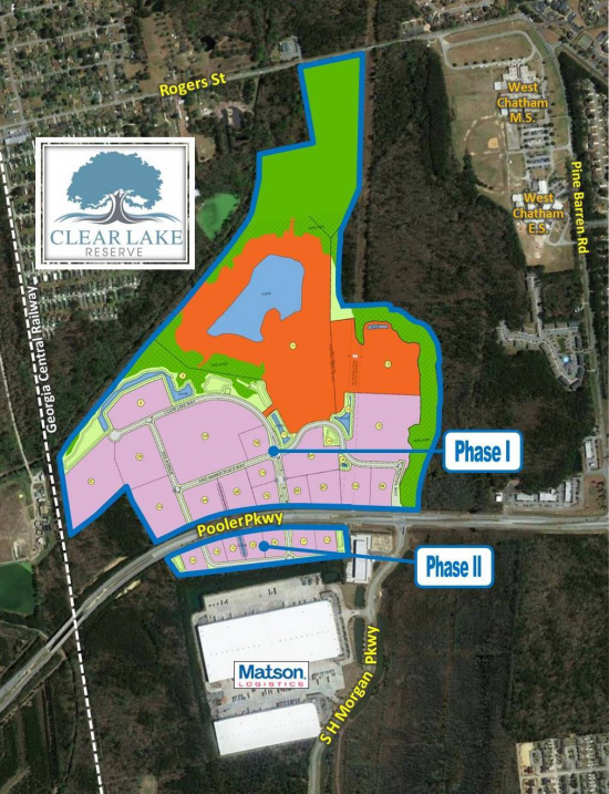 Clear Lake Reserve is located along Pooler Parkway between the I-16 interchange and US Highway 80 in the City of Pooler. It is only 3 miles to the I-95 interchange (South Godley Station) and the Savannah/Hilton Head International Airport. Local amenities are supported with a population reaching 850,000 within a 30 mile radius and high traffic counts from the interstates.