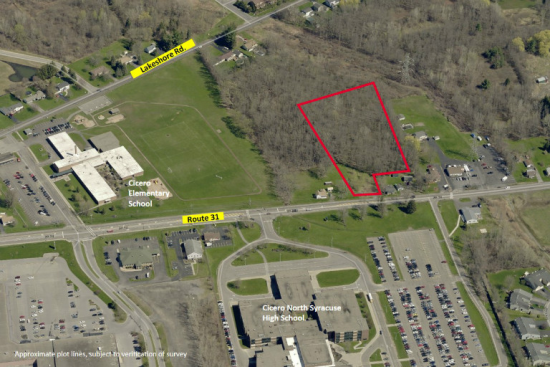 Development site measuring 3.52 ± acres on Route 31 in Cicero. All utilities available. Zoned General Commercial. This site is situated across from Cicero North Syracuse High School on a main retail corridor. Can be combined with adjacent 2.95 acre parcel for a total of 6.47 acres.